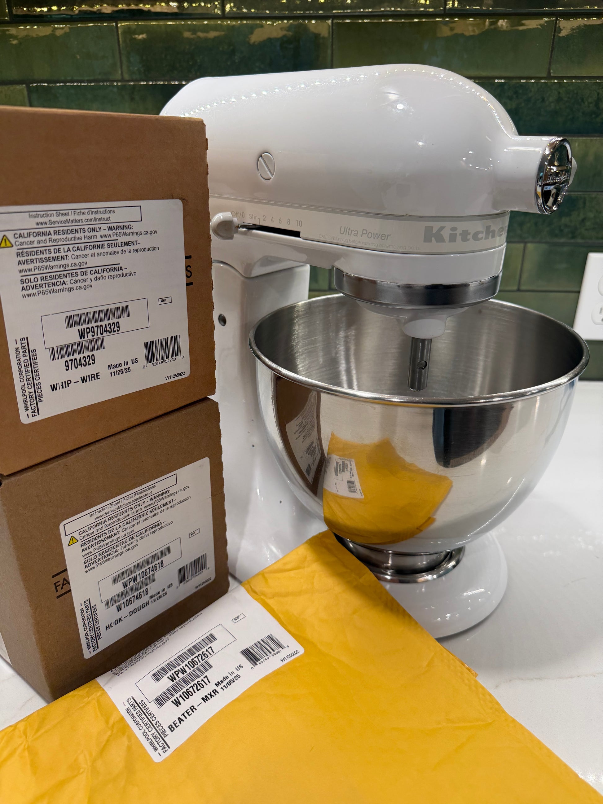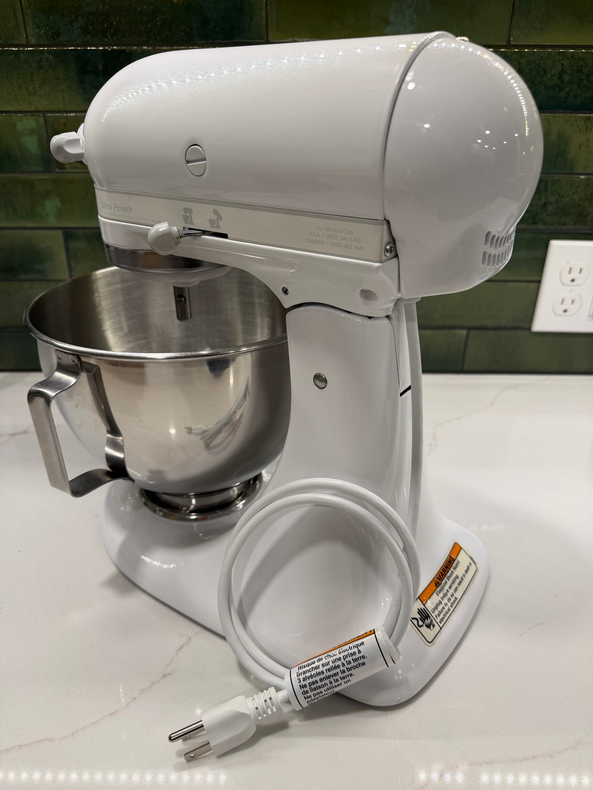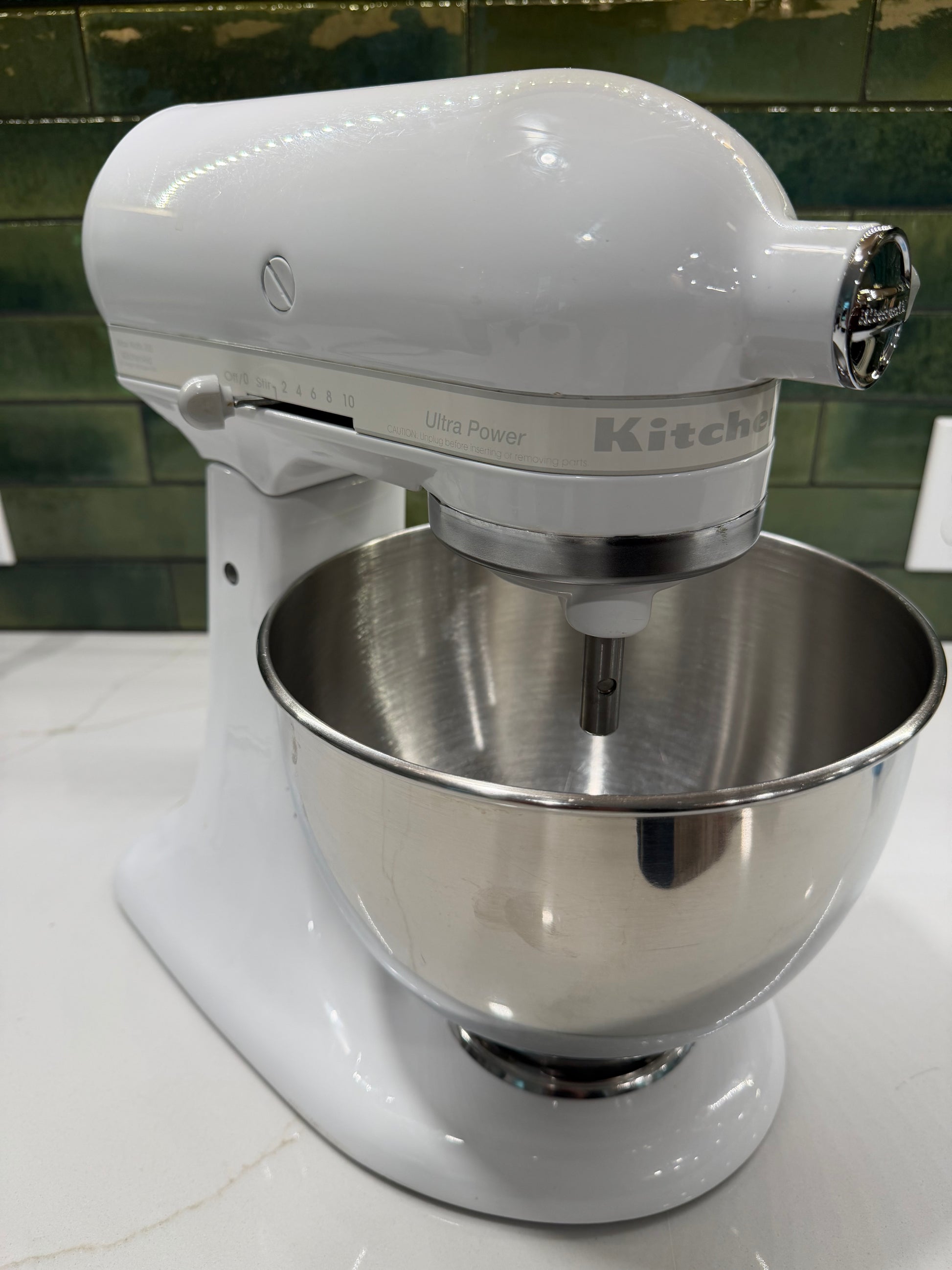 This white-on-white 4.5 quart Ultra Power (model KSM90WW) was born in September of 2001 and has received an extensive refresh, to include new OEM attachments, gaskets, grease, center shaft, pins, o-ring, and cord. Take comfort in knowing Matt's Mixers offers a one-year warranty and completely stands behind every item sold. And Delivery is available!